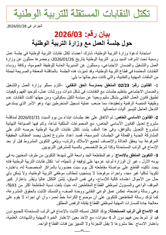 المجلس الوطني المستقل لمستخدمي التدريس للقطاع ثلاثي الأطوار للتربية