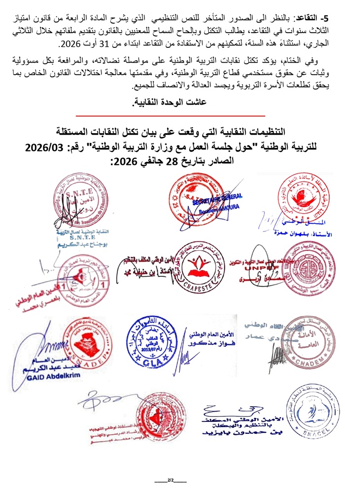 المجلس الوطني المستقل لمستخدمي التدريس للقطاع ثلاثي الأطوار للتربية